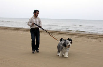 なぎさドライブウェイを走る犬