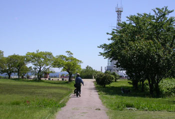 周りが芝生の公園になっていて