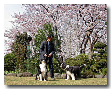 桜をバックに