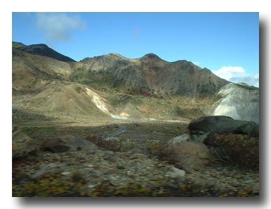 山頂近くの見事な紅葉を縫って走る、磐梯吾妻スカイライン